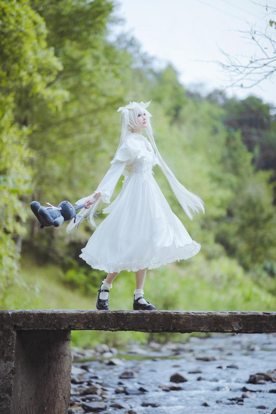 在她的作品中,光是看着她的照片就让人忍不住大喊一声可爱,其中有很多意想不到的搭配让Cosplay变得更加丰富多彩。她都能演绎得非常到位,她穿着粉色的小裙子。